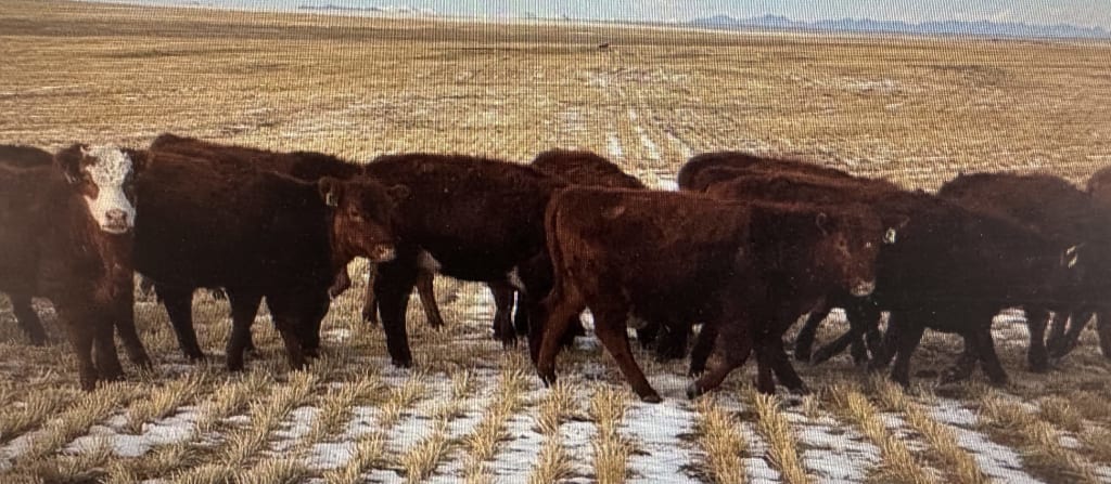 PETER WYATT 95 RED HEIFERS 700-725 LBS BOVA SHIELD ONE SHOT AND ULTRA BAC ON NOV 10, 2025 BEEN ON A LITE ROLLED BARLEY AND GREEN FEED.